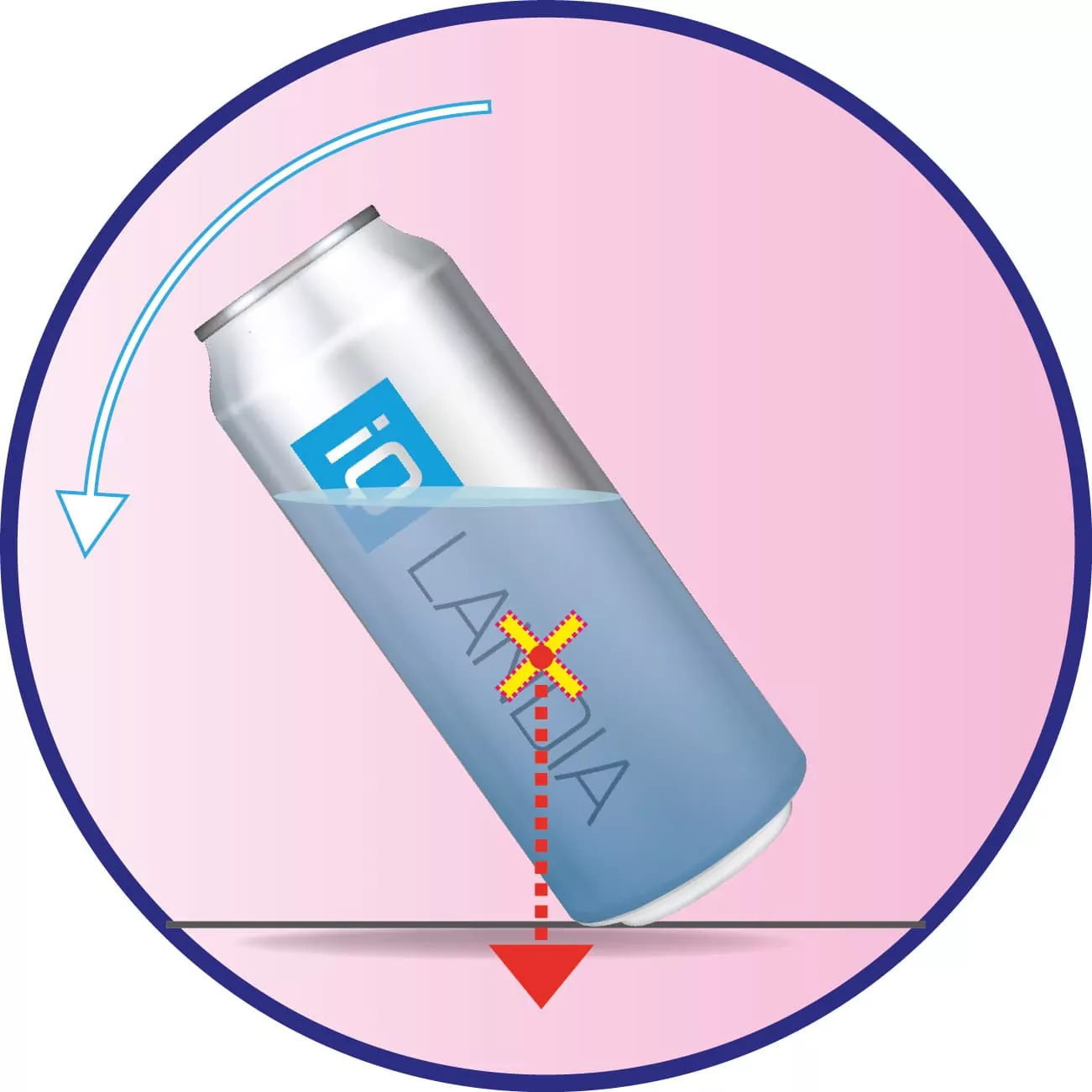 S prázdnou plechovkou to opravdu nejde. Aby stála, musí mít těžiště nad opěrnou plochou. Právě těžiště je totiž působištěm tíhové síly, a když není nad opěrnou plochou, tíhová síla plechovku zvrhne:
