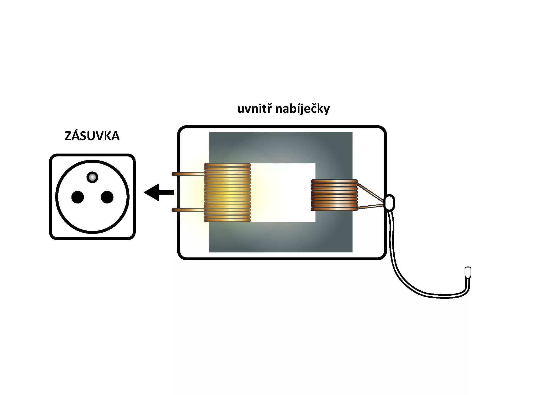 Jde tedy o dva elektrické obvody spojené pouze pulzujícím magnetickým polem. Takže co se stane, když odpojíme mobil nebo notebook? Druhý obvod se přeruší a přestane jím téct proud. První obvod ale zůstane stále uzavřený a proud jím poteče dál.